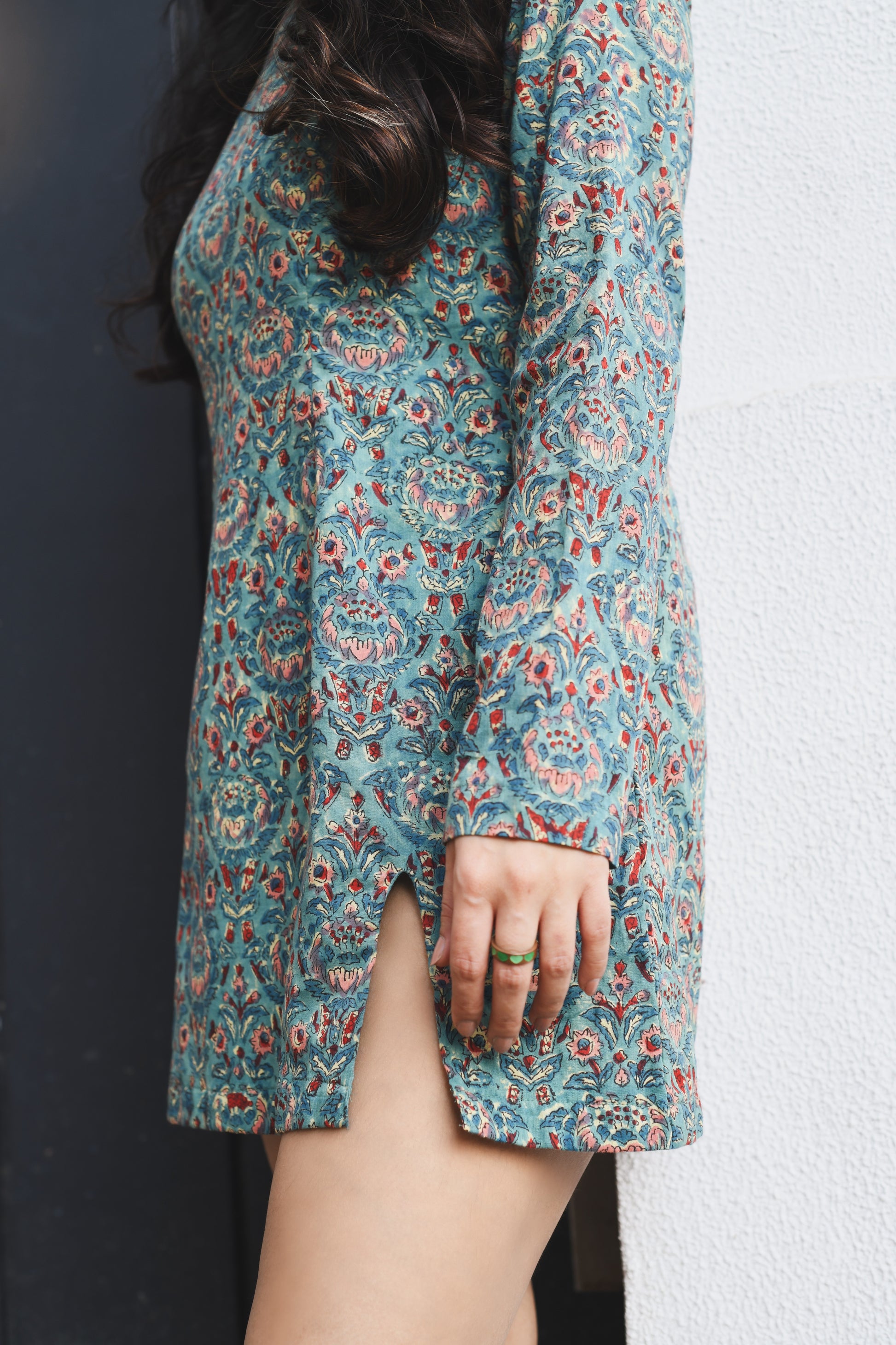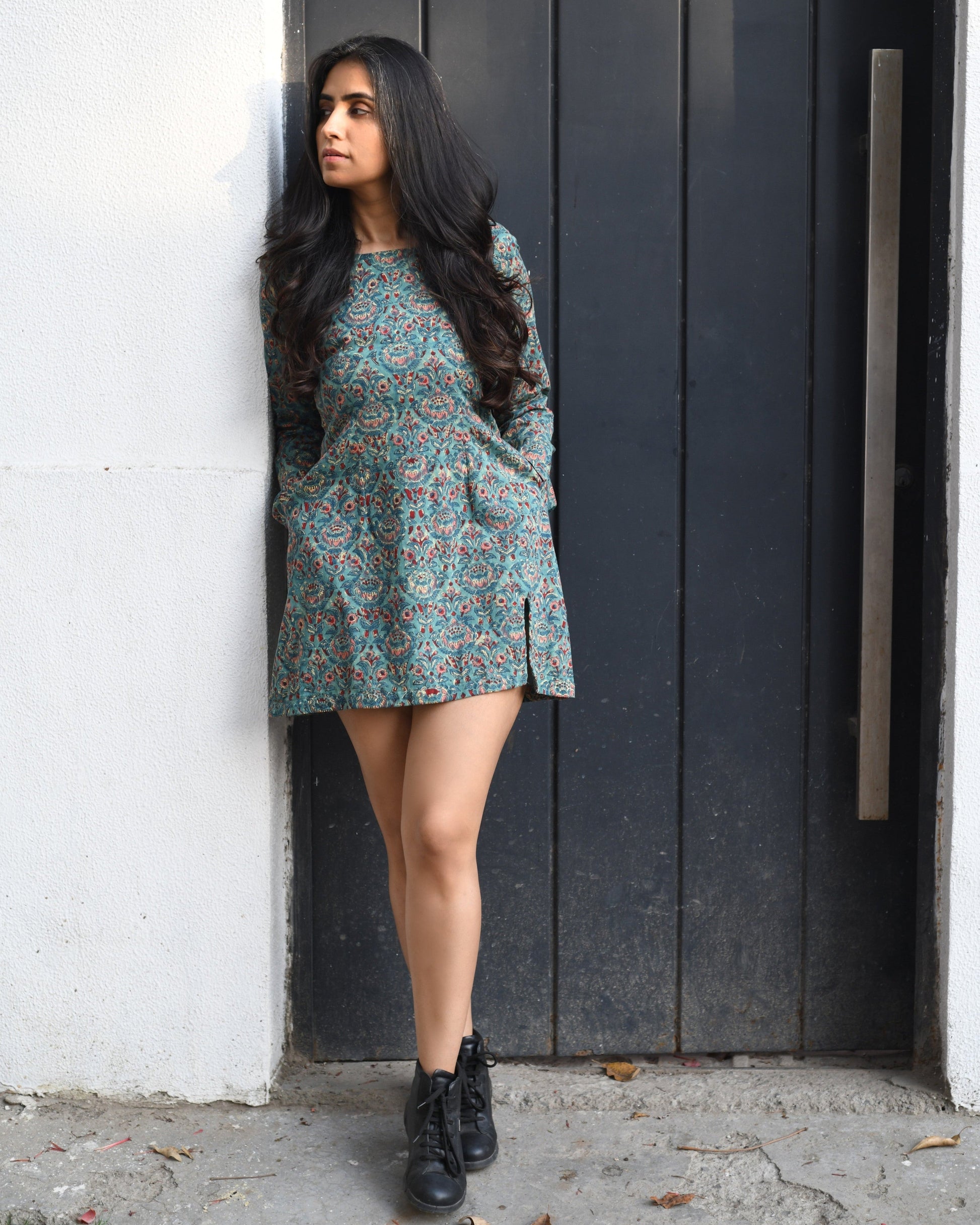 Details and Fit: Hand block printed in an earthy green tone, this dress exudes elegance and timeless charm. The intricate print adds a rich, artisanal touch, making each piece unique and full of character. The soft, luxurious fabric drapes beautifully, creating a flattering silhouette that enhances your natural grace. With its intricate motifs and regal appeal, it’s the perfect blend of comfort, artistry, and grandeur