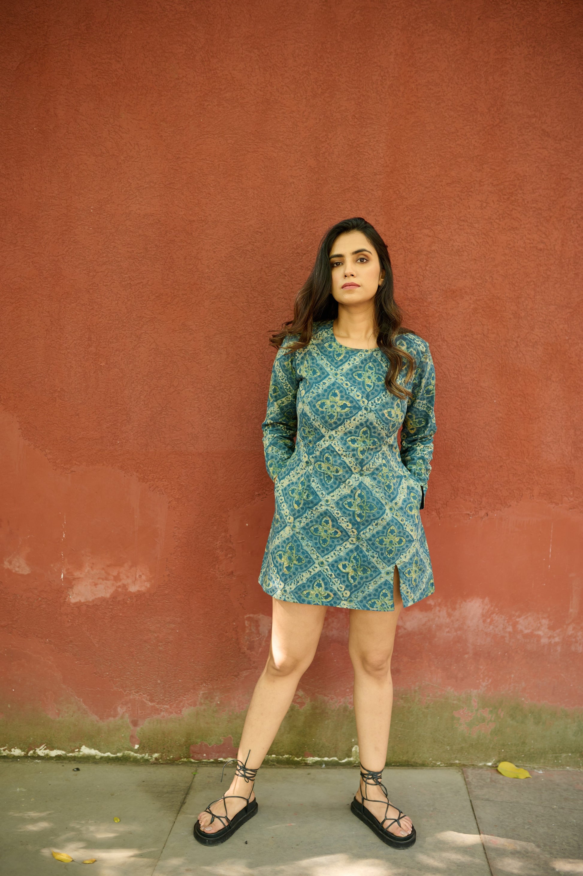 - Pure Cotton Hand Block Printed Dress with a small slit and zero neck. The dress can be worn casually or on any simple occasions.