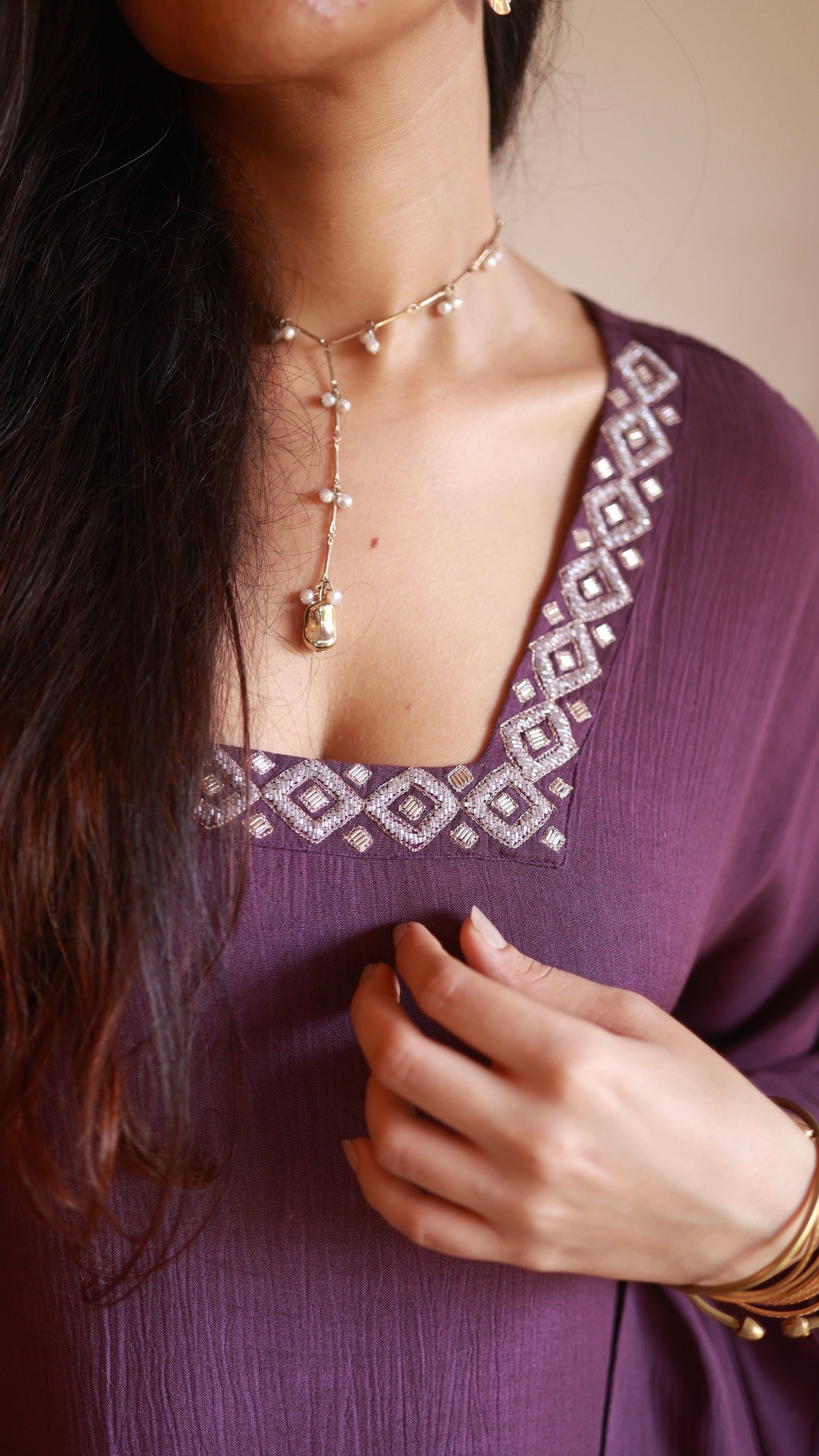 Hand Embroidered Royal Purple Kaftan (Made To Order)