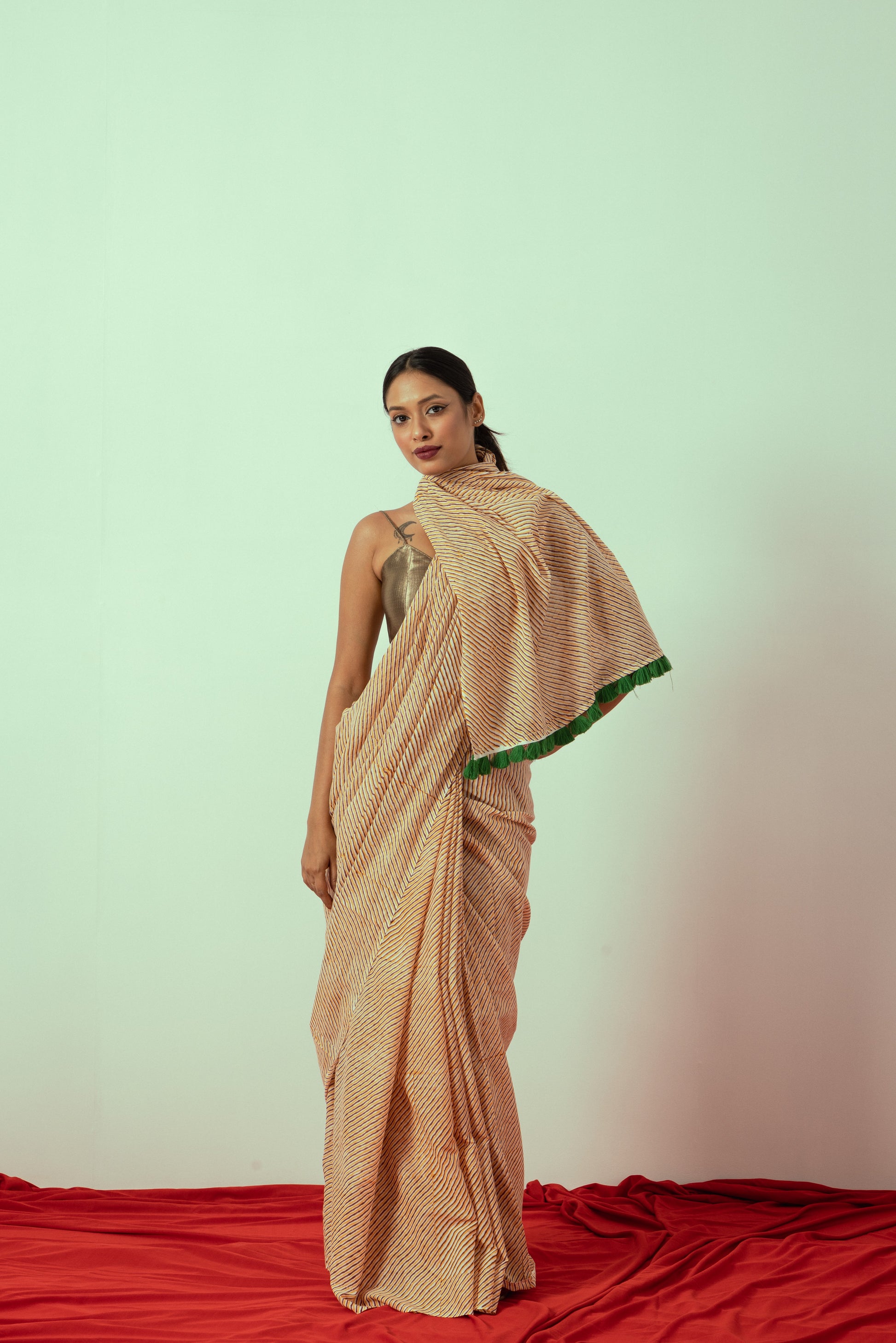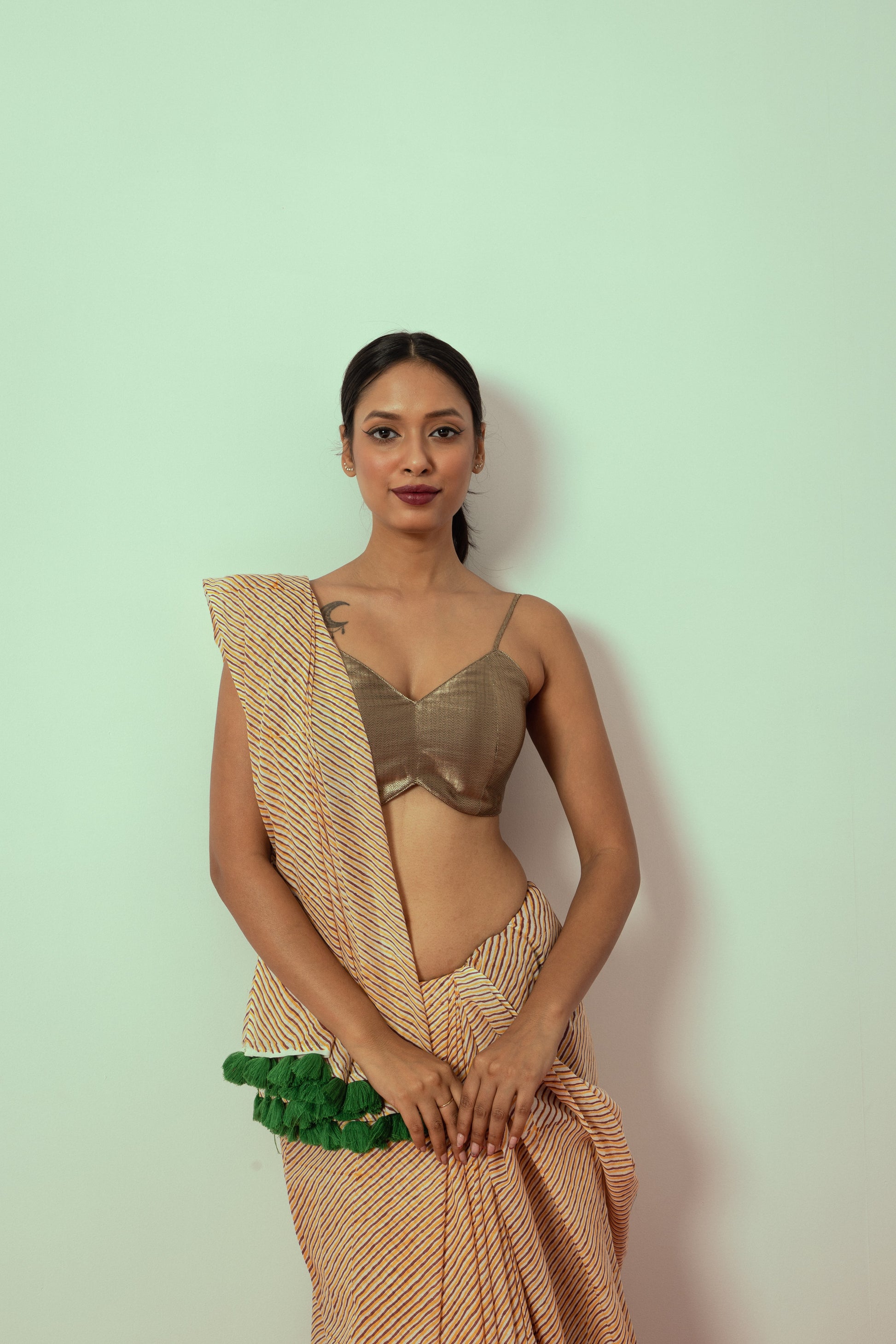 This light-weight saree with its eye-catching stripes, the print will make you feel quirky and fun. Wear it to work or to any special occasion and be sure that with Margarita Saree, you'll be the star of the show! Plus, it takes up very little space in your bag, so you can take it anywhere without worrying about being weighed down.