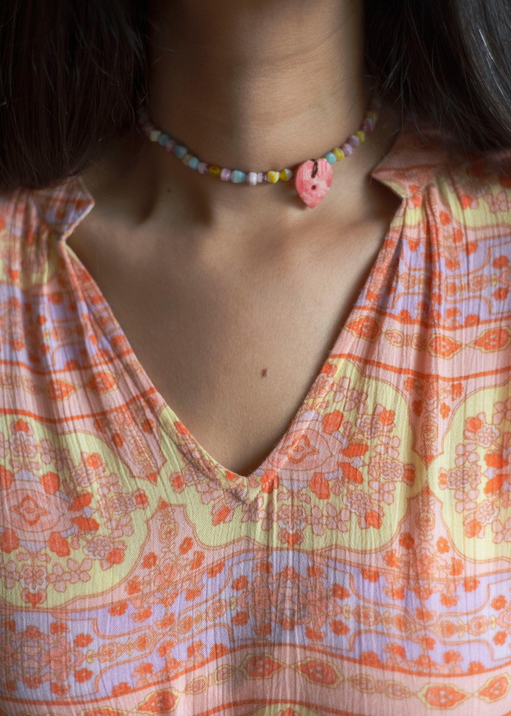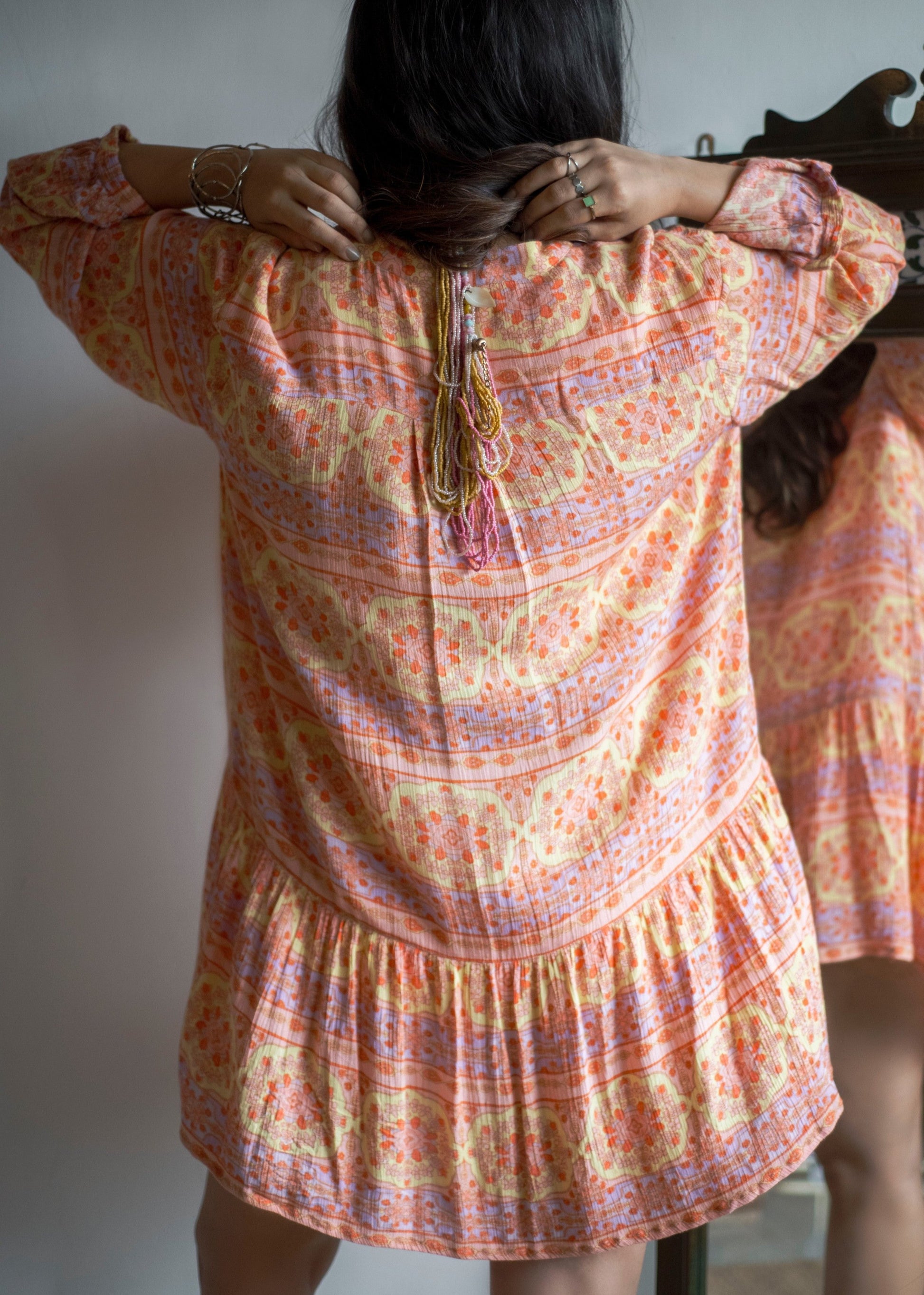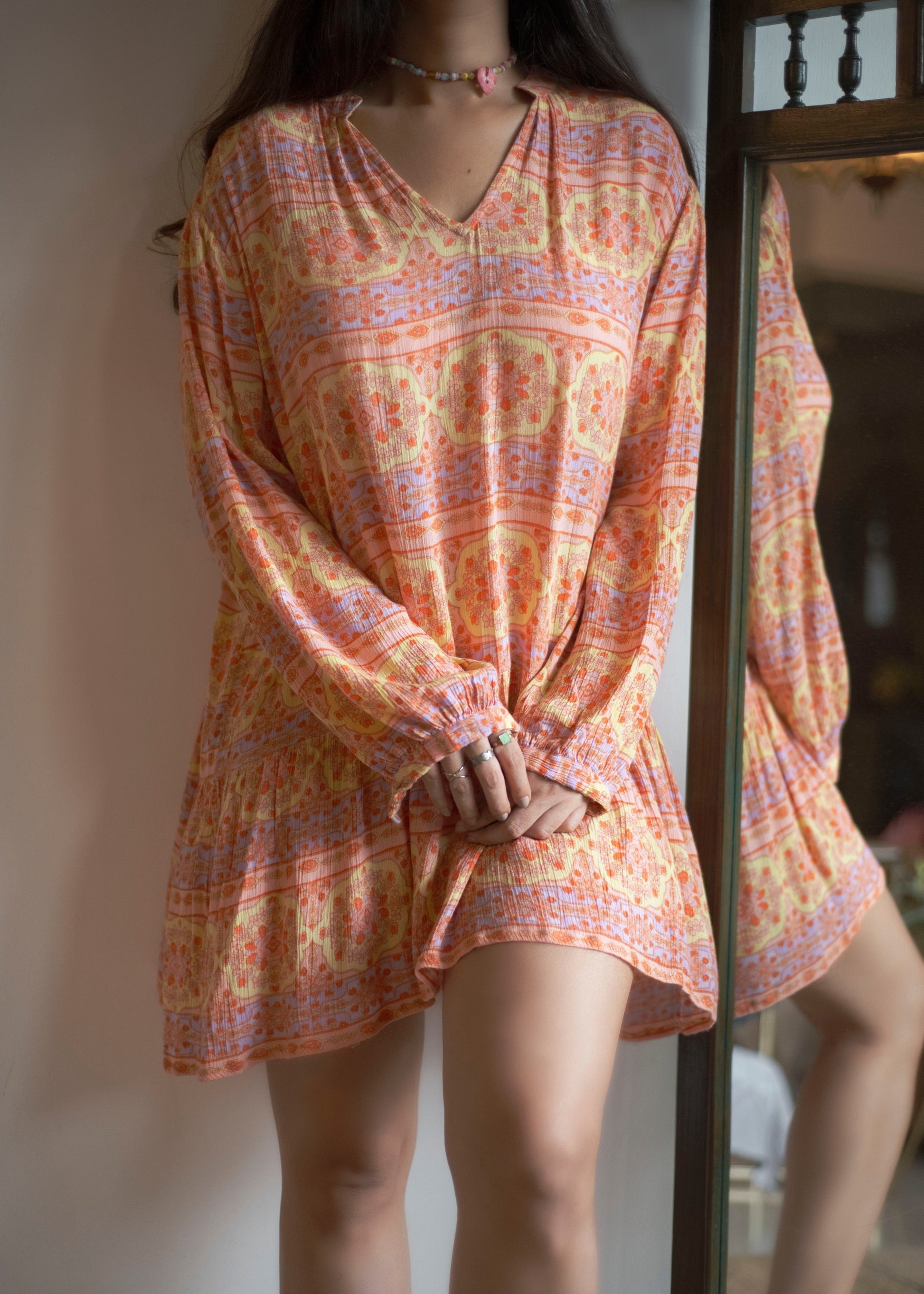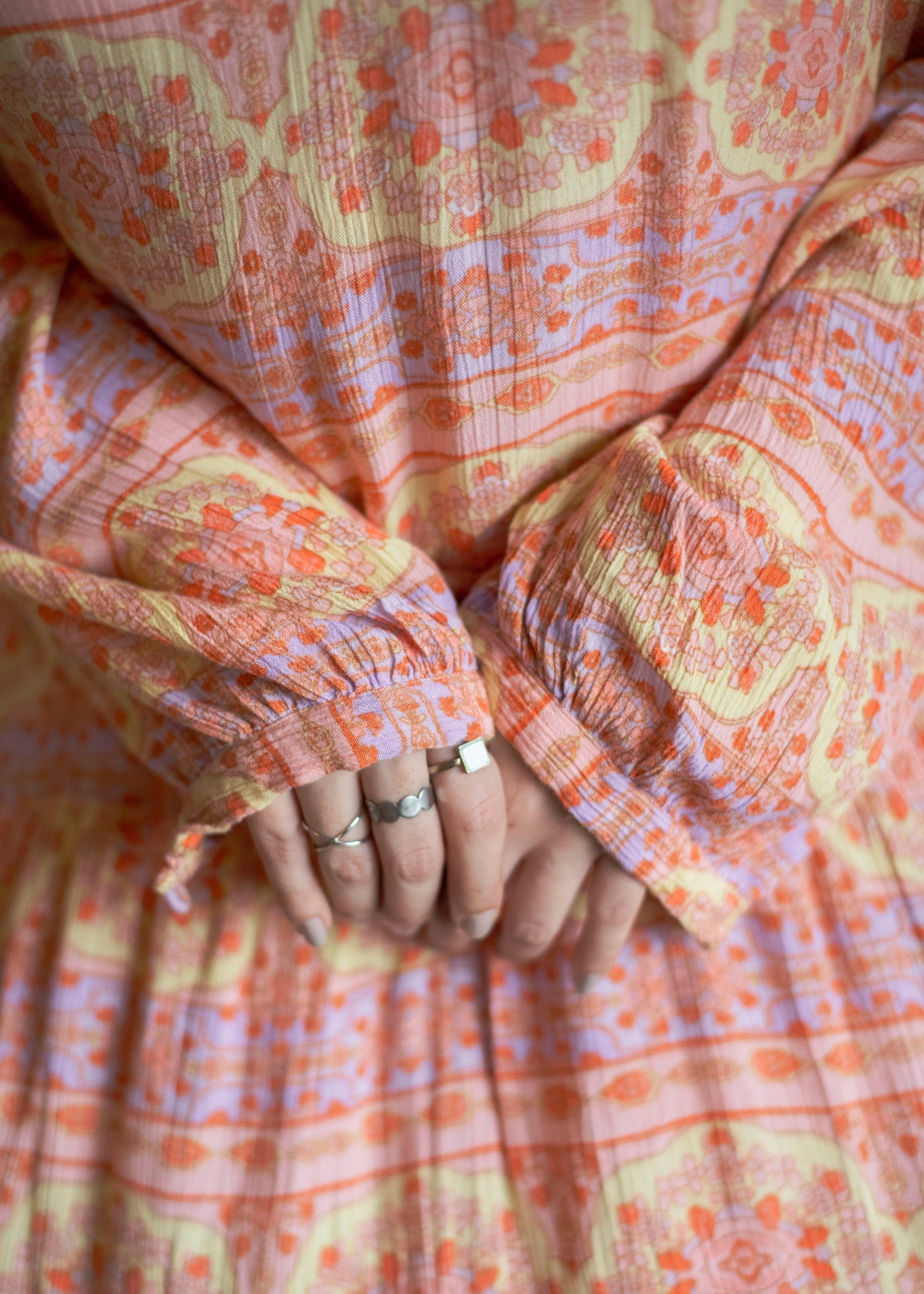 The bold, vibrant print commands attention, while the relaxed fit and delicate details create a totally unique, eye-catching look.