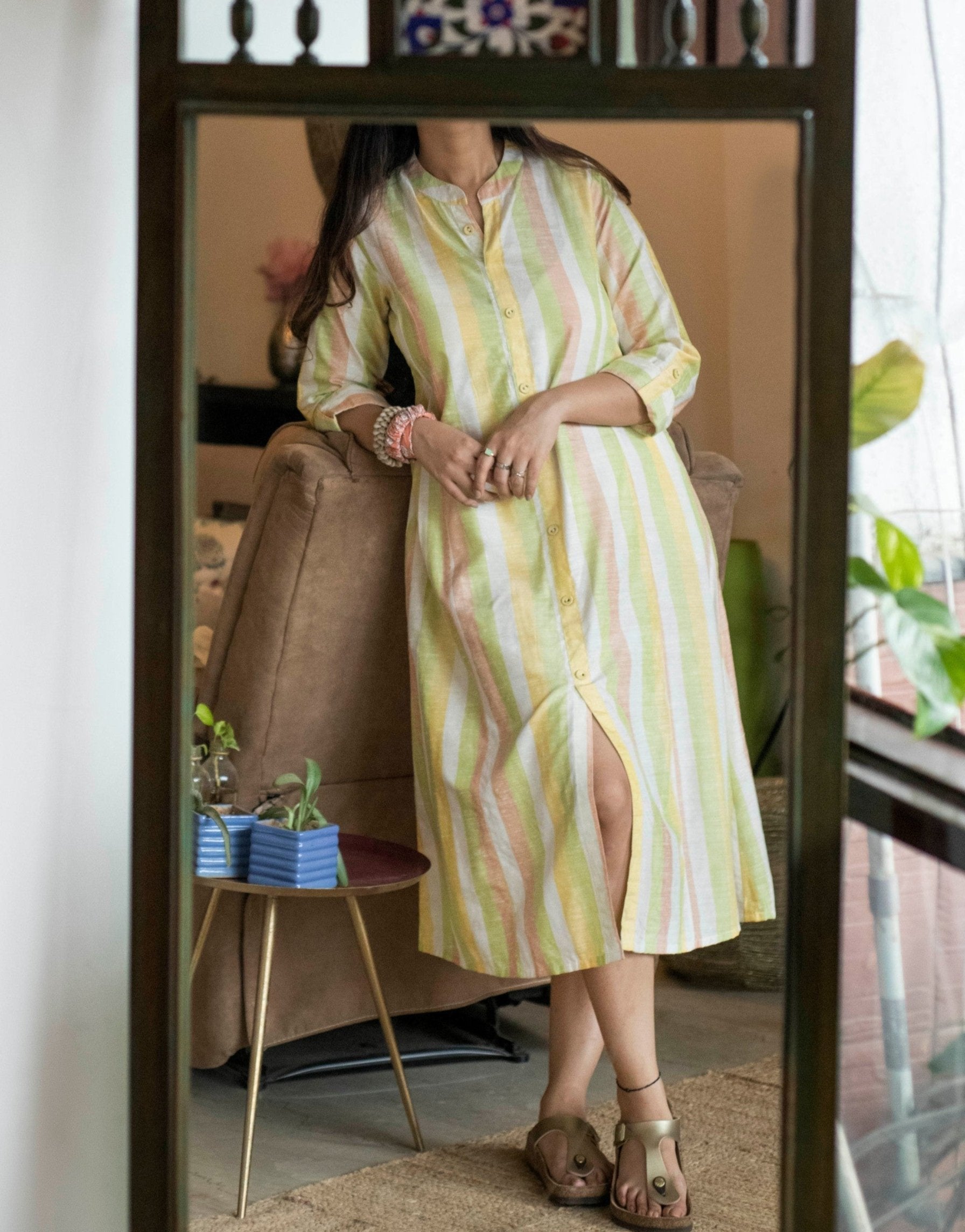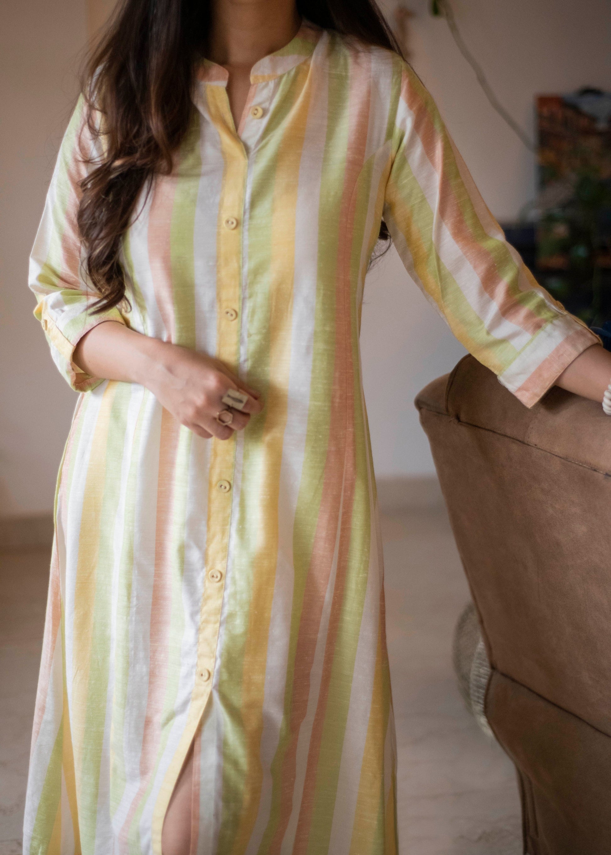 Utility and functionality: The dress has a pocket and a small slit on a simple structured shirt dress pattern. Looks stylish and feels great.Â
