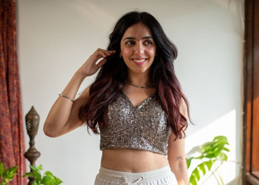 The blouse can be worn with a variety of sarees or on its own as a stand-alone.