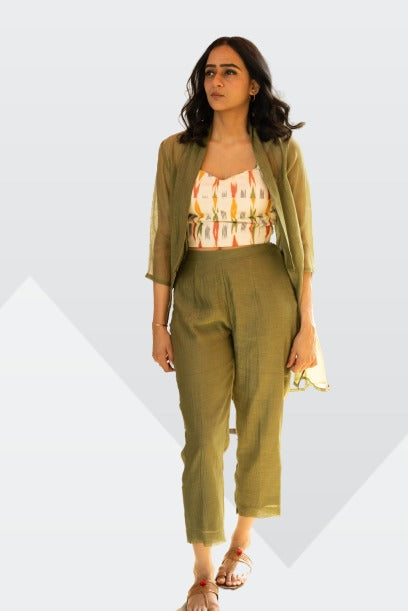 The Matcha Mul Chanderi Shrug and Pant Co-ord (set of 2)