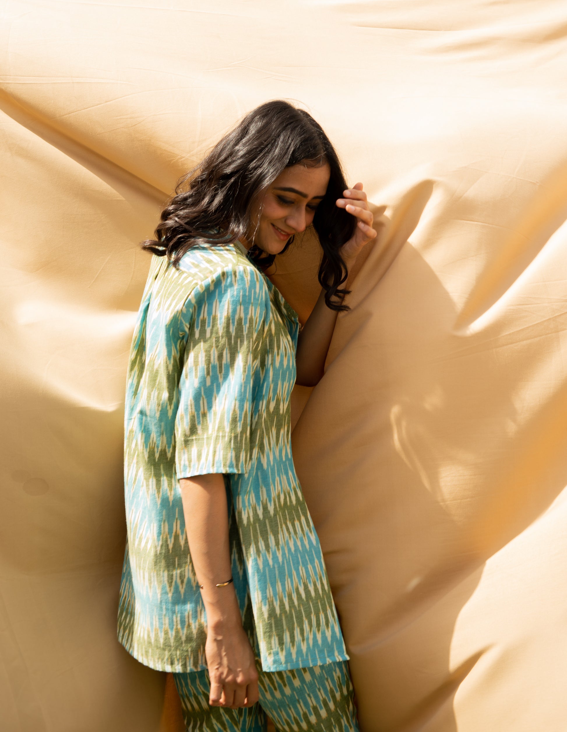 The Ocean Handloom Ikat Cotton Coord (Set of 2)