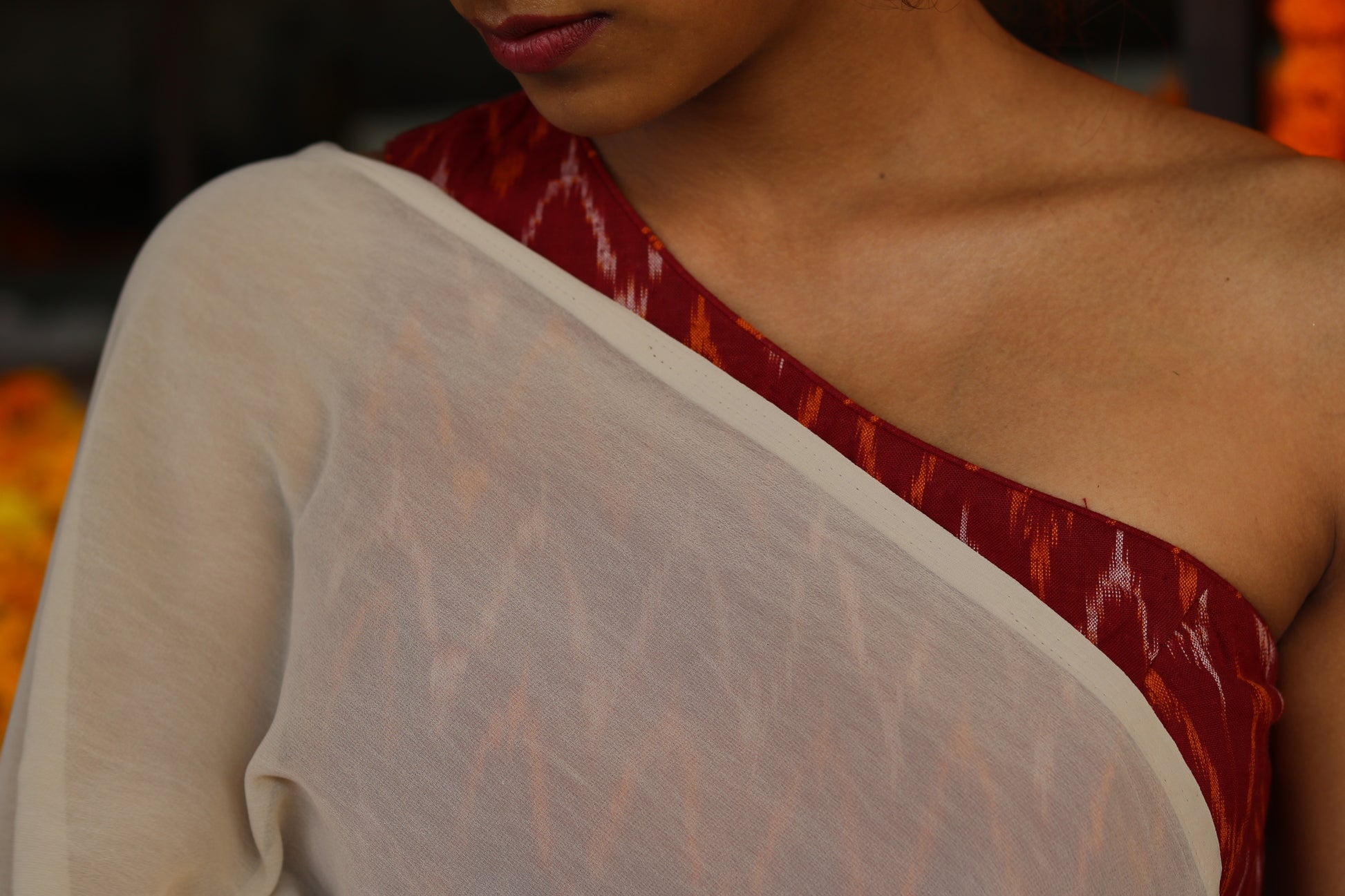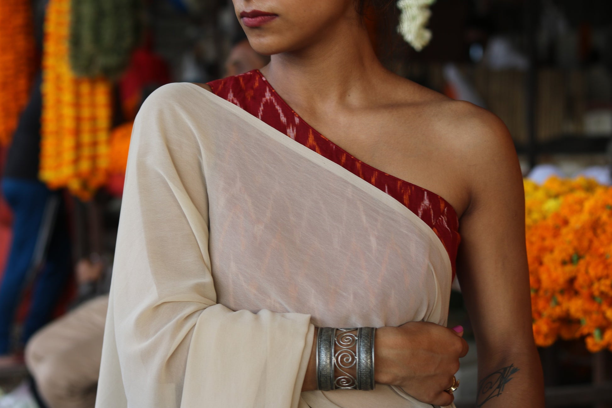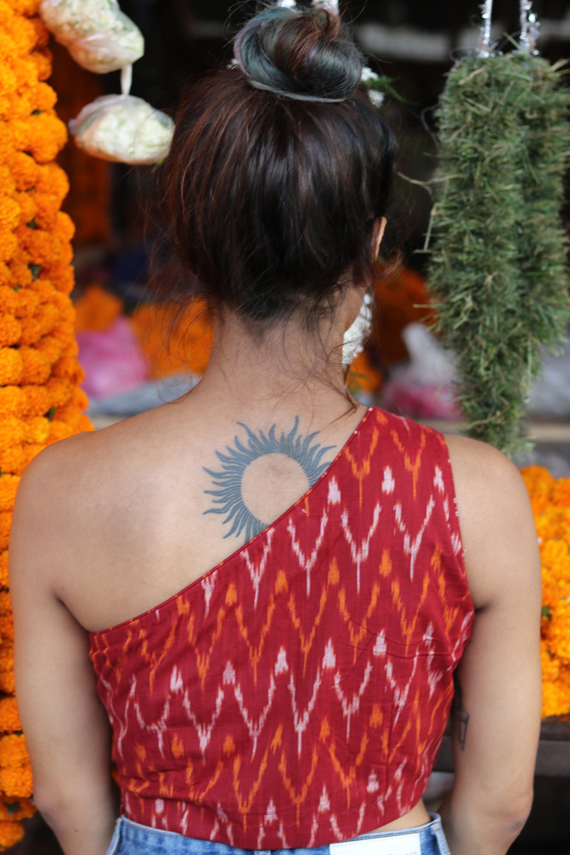 The rustic red ikat print is a bold statement piece to add to your wardrobe. You will look effortlessly cool and turn heads in this stylish one-shoulder style blouse.
